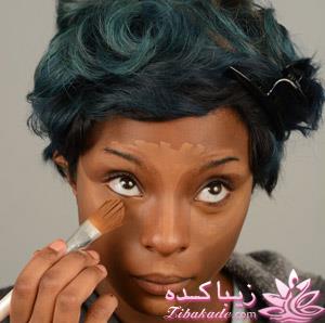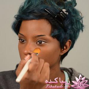 • مرحله سوم با استفاده از براش یا انگشت کانسیلر رنگ روشن را با کرم پودرتان ترکیب کنید.