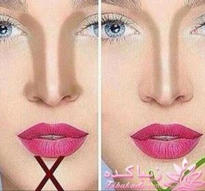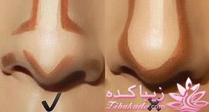 با استفاده از کانسیلر یا کرم پودر، از بین ابروها تا روی پل بینی، یک خط صاف و نازک بکشید. بعد با کانسیلر آن را محو کنید تا کناره های بینی نزدیک سوراخ های بینی.