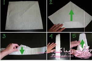 دستمال مورد نظر را انتخاب کرده و همانند تصویر برای درست کردنش پیش ببرید: