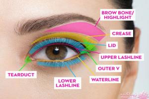 • ناحیه زیر مژه های پایین چشم آرایش این قسمت برای تمام افراد لازم نیست. هم می توانید از خط چشم استفاده کنید هم سایه. البته ممکن است به هر کسی نیاید. باز هم به سلیقه و حالت و اندازه چشم هایتان بستگی دارد. معمولاً کسانی که آرایش اسموکی دوست دارند از سایه تیره دودی یا قهوه ای برای این قسمت استفاده می کنند، البته بدون کشیدن خط چشم.