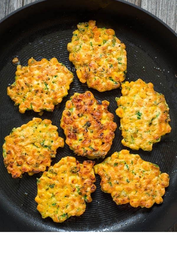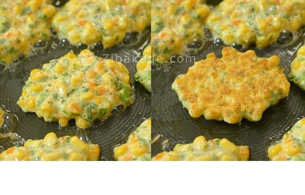 پس از داغ شدن روغن ، یک قاشق غذاخوری از مواد آماده شده را در داخل آن ریخته و روی مواد را با قاشق صاف کنید.