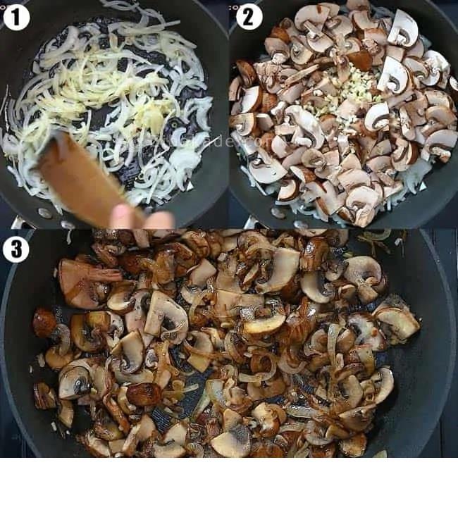 سپس قارچ و سیر را به آن اضافه کنید و به مدت 10 دقیقه آن ها را بپزید .