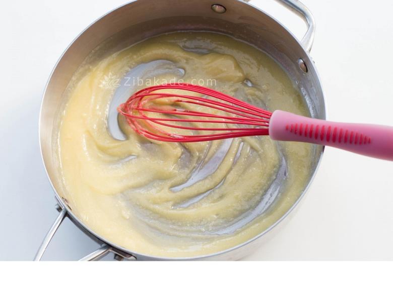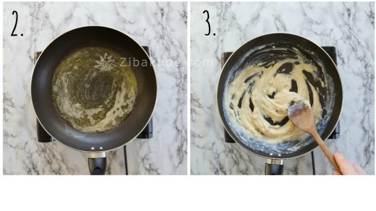 کره را در یک قابلمه ذوب کنید. آرد را اضافه کنید و همزمان با پخته شدن، هم بزنید.