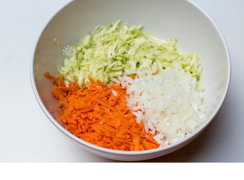 پیاز را به صورت مکعب های کوچک خرد کرده و همه مواد را درون یک کاسه قرار دهید.