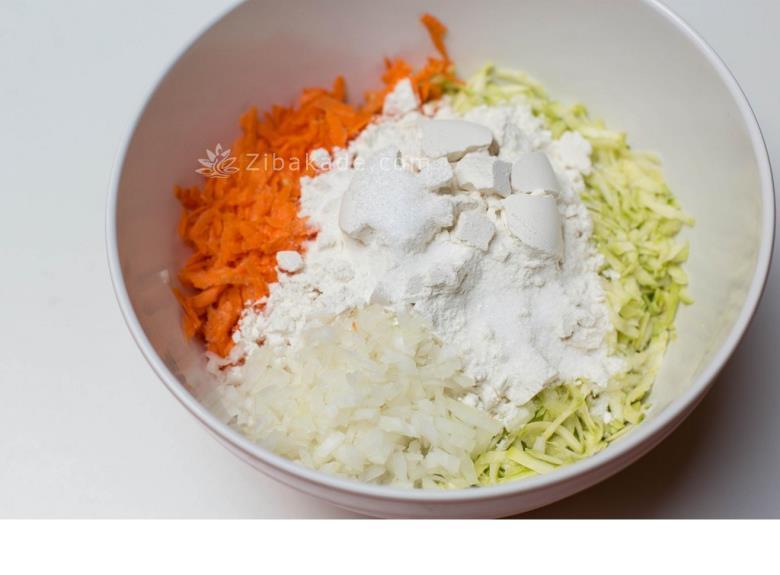 هویج و کدو سبز را پوست بگیرید و آنها را با رنده ی درشت رنده کنید .