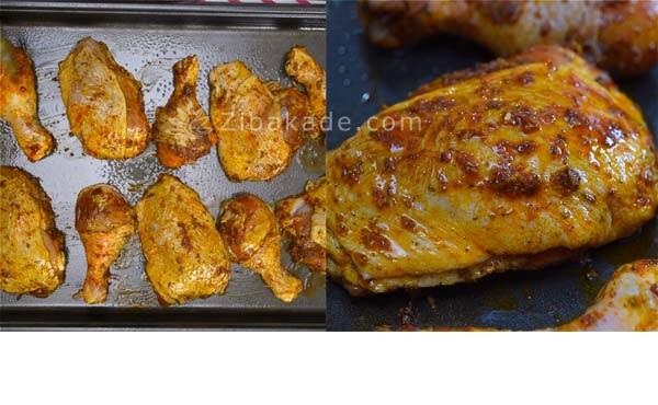 مرغ ها را حدود 40 دقیقه یا تا زمانی که کاملا پخته شوند، درون فر بپزید.