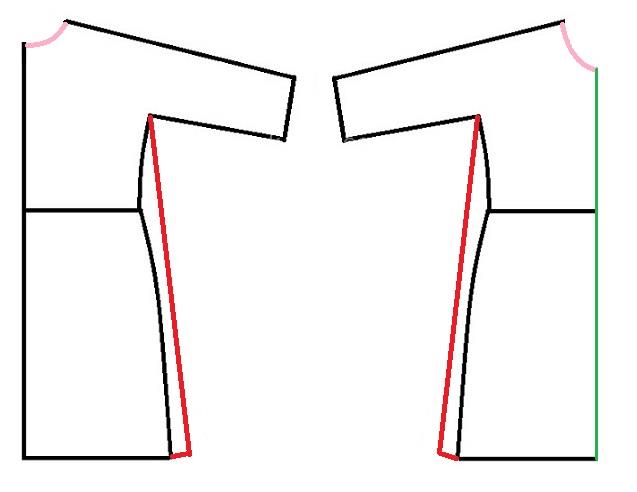 بالاتنه ی جلو و پشت رو از خطوط سرشانه و پهلو به هم وصل کنید .