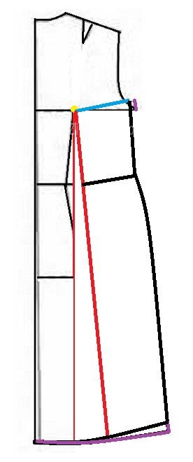 دقیقا به همون اندازه ای که خط آبی به سمت بالا رفته ( خط بنفش ) به گوشه ی پایینِ دامن اضافه کنید ( خط بنفش در پایین ) و به خط اوزمان به صفر برسونیدش .