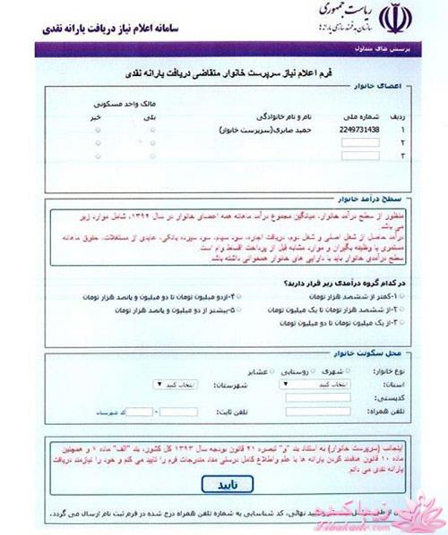 در قسمت شماره موبایل هم حتما شماره صحیح را وارد کنید چون در انتها کد پیگیری ثبت نام یارانه به آن شماره اس ام اس می شود.