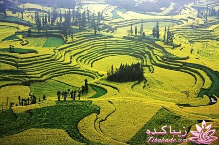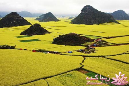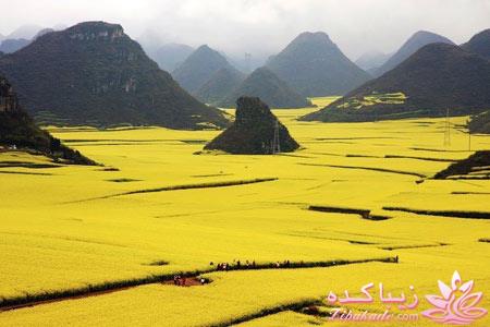 درفصل بهار، حومه شهر Luoping در شرق چین به منظره ای فوق العاده زیبا و دیدنی از گل های زردرنگ تبدیل میشود. گل های زرد رنگ کلزا ( یا کانولا ) تمام زمین ها و تپه های اطراف این شهر را پر میکنند و عطرشان نه تنهاانسان ها بلکه زنبور های عسل را هم به خود جذب می کند.