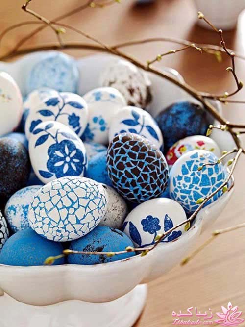 نقاشی روی تخم مرغها را هم می توانید با مداد شمعی، آب رنگ، گواش و مداد رنگی انجام دهید و هم دور تخم مرغها را قبل از جوشاندن پار چه های رنگی که رنگ می دهد پیچیده، با نخ دور تا دور آنها را محکم کنید و داخل ظرف آب جوش بجوشانید تا به شکلهای جالبی آنها رنگ آمیزی شوند.