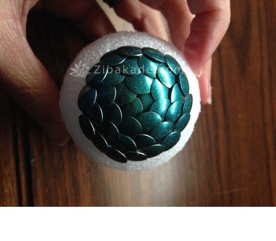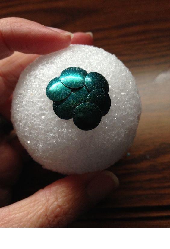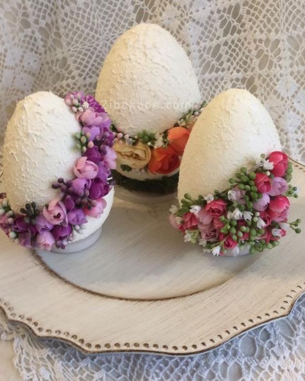 برای خشک کردن تخم مرغ ها چند عدد سوزن ته گرد را در اسفنج فرو کنید و تخم مرغ ها را روی آن ها قرار دهید.