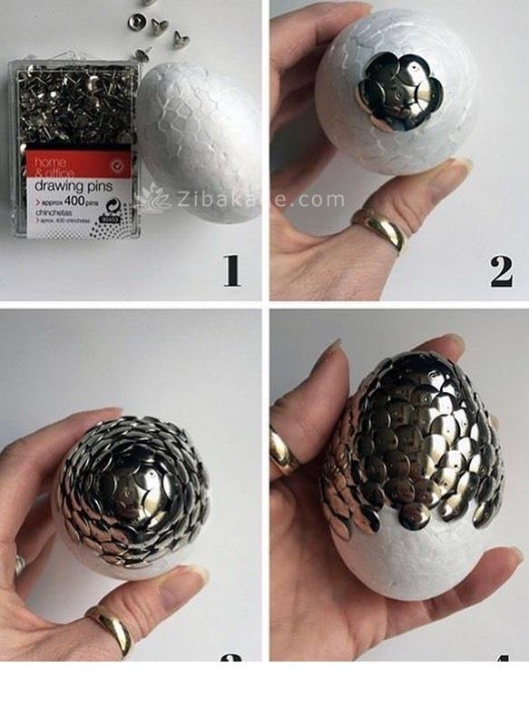 به انتهای تخم مرغها یک چوب باریک وصل کنید .