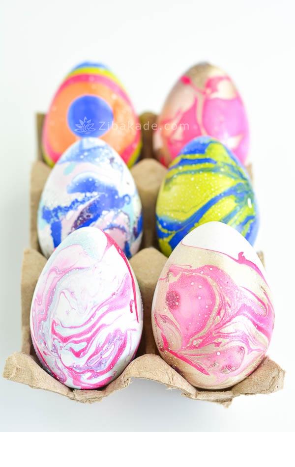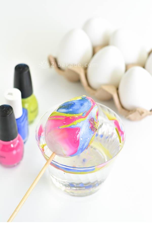 برای درست کردن تخم مرغ های ابر و بادی می توانید از لاک با رنگهای متنوع و روشن استفاده کنید.