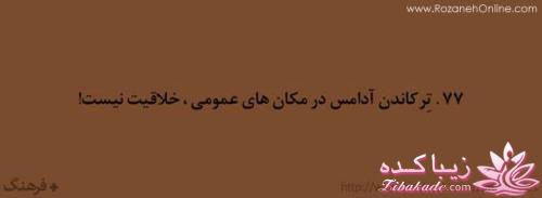 بدون شک هیچ کدام از ما انسان ها از لحاظ رفتاری و فرهنگی کامل نیستیم و هر کدام عیب هایی داریم، بعضی کمتر بعضی بیشتر. عیب هایی که شاید به نظر خودمان معمولی باشد و اهمیتی نداشته باشد یا همگانی باشد و فکر کنیم در جامعه به چشم نمی آید. ولی می توانیم با تفکر به آنها و سعی در تجدید رفتارهای بعضا زشت مان! فرهنگ خود را بهتر و غنی تر از گذشته کنیم که این تغییرات مطمئنا تاثیری مثبت، ولو اندک، در خود، خانواده و جامعه مان خواهد داشت. پس بیایید از خودمان شروع کنیم
