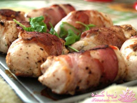 هویج را بپزید و آن را لابهلای سینه مرغ که پهن شده است،