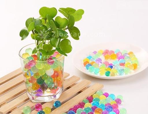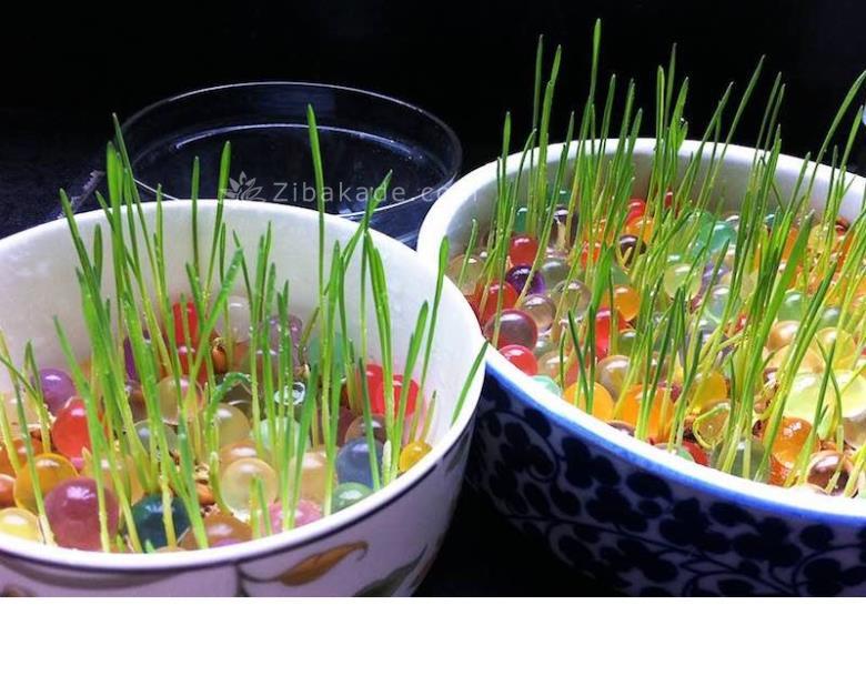 وقتی دانههای رنگی خام ژله ای به اندازه کافی بزرگ شدند، آن ها را داخل آبکش ریخته و آن را داخل ظرف اصلی که میخواهید سبزه در آن سبز شود بریزید.