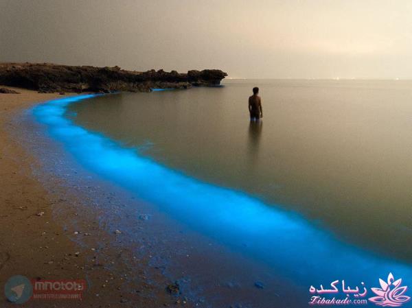 جزیره لارک هرمزگان در خلیج_فارس که پلانکتون ها باعث میشوند شبها آب کنار ساحل آبی و درخشان شود