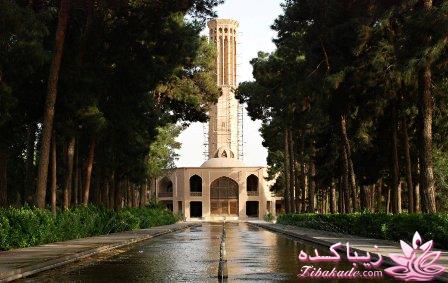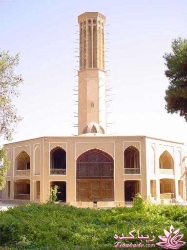 های مهم این باغ ساختمان هشتی با بادگیری به ارتفاع 34 متراز کف ساختمان