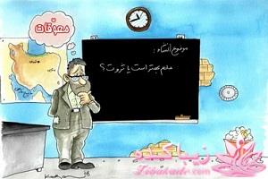 روزنامه است. کاریکاتوری که در آن معلمی با لباس مندرس در پای تخته سیاهی
