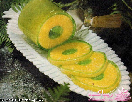 یه قوطی کمپوت که آبشو خالی کرده و با پودر ژله مخلوط مرده و ریخته تو همون قوطی روی اناناس هااا بعدم ژله رو از قالب برگردونده