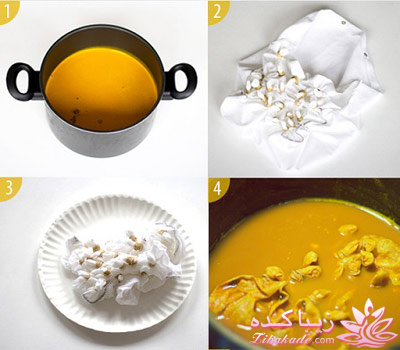 آموزش تصویری رنگ آمیزی پارچه با زردچوبه
