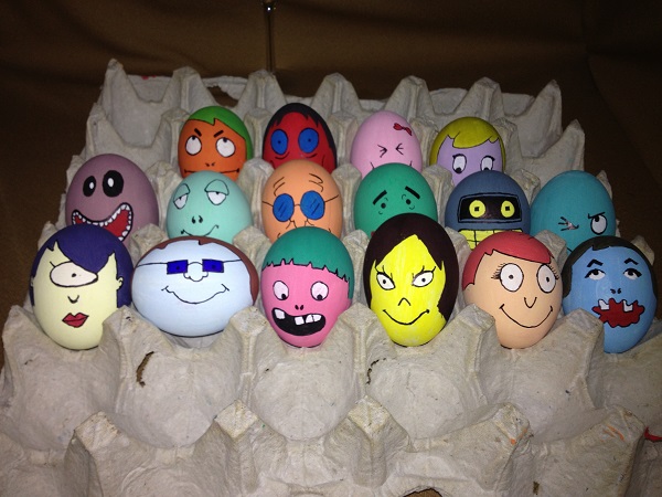 نکته : نقاشی روی تخم مرغها را هم می توانید با مداد شمعی، آب رنگ، گواش و مداد رنگی انجام دهید و هم دور تخم مرغها را قبل از جوشاندن پار چه های رنگی که رنگ می دهد پیچیده. با نخ دور تا دور آنها را محکم کنید و داخل ظرف آب جوش بجوشانید تا به شکلهای جالبی آنها رنگ آمیزی شوند.