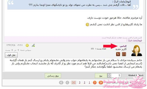 عزیزم یه خواهش ازت داشتم ..خواستم اگه بشه برا تبلیغات کاربرا توی سایت یه محدودیتی قائل بشید .. الان هر تاپیکی رو باز میکنی خانومی به نام عسل شبیری تبلیغ آرایشگاهش رو کرده ...یعنی واقعا شورش رو در آورده کاش یه جوری یه سر و سامانی به این تبلیغات بدید گلم