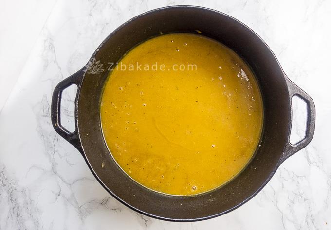 ۱-ابتدا آب را می جوشانیم(ازآب قلم یا آب گوشت هم می توانید استفاده کنید.)