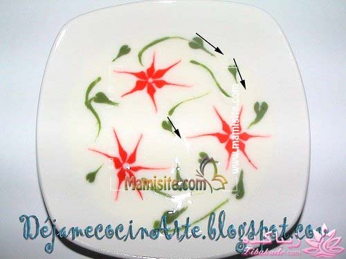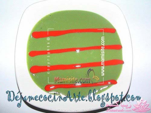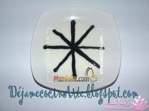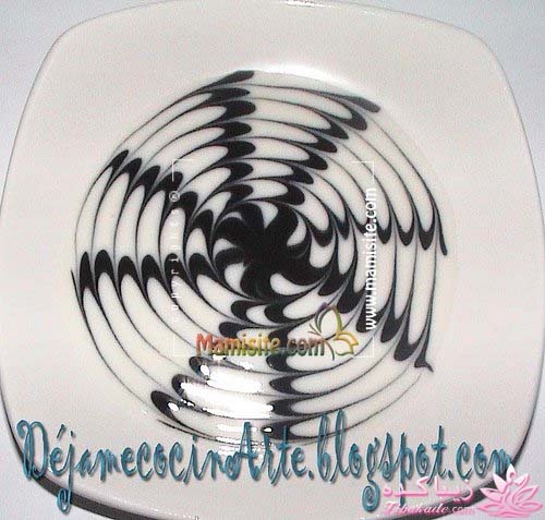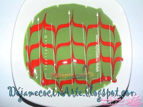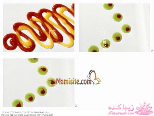 با سس قرمز و سس خردل دوتا خط کنار هم کشیدهو بعد با خلال دندونفرورفتگی و بیرون آمدگی بوجود آورده