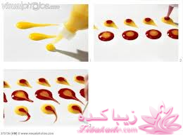برا سس مایونز اگه میخاین از رنگ استفاده نکنی میتونین مثل بنده از سس های کچاپ تک نفره استفاده کنین ..یه گوشه اش رو یه سوراخ ریز ایجاد کنین و مثل یه قیف نازک با اون بکشین