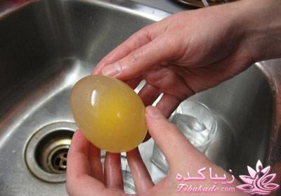 تغییر کردن ظاهر تخم مرغ در سرکه