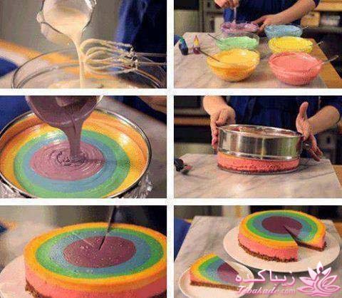 روناک من این کیک چند رنگ یا همون رنگین کمان رو درست کردم خــــــــــــــــیلی ناز میشه