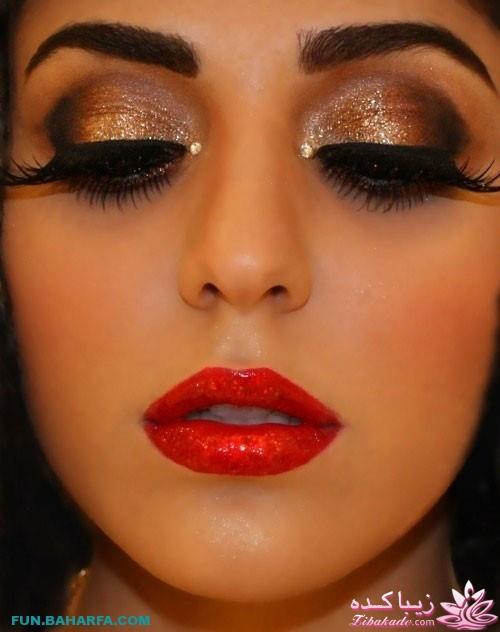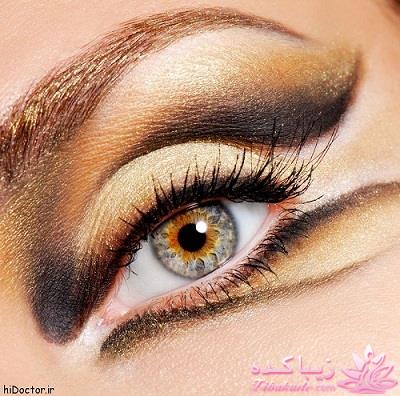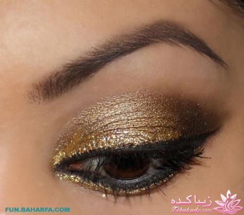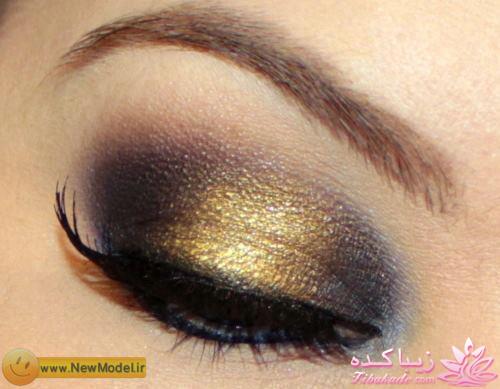 خط چشم و سایه های ملایم طلایی جزو میک آپهای شیک میباشند، که درخشندگی خاصی را به چهره شما ارزانی میدارد. در حقیقت رنگ طلایی یکی از رنگهایی که است که می توان با آن کارهای زیادی انجام داد و با هر رنگ پوستی سازگاری دارد و میتوان هم در طول روز و هم در شب از آن استفاده کرد (البته اگر این کار را زیرکانه انجام دهید) کمی رنگ طلایی درخشندگی مطبوعی را بر روی صورت شما به وجود میآورد. ابتدا دور چشمها را تمیز کنید (با پاک کننده ی مخصوص اطراف چشم) و بعد آبرسان دور چشم مصرف کنید. حالا کانسیلر مورد نظر رو دور تا دور چشمتون بزنید و کاملا اطراف چشم را پوشش بدید. مرحله اول: نیمی از حلقهی پشت پلک را با طلایی و نیمی دیگر را قهوایی براق سایه بزنید. نکته:هیچگاه کل پلک خود را (از محل رویش مژهها تا زیر ابرو) طلایی نکنید. بهتر است در نزدیکی مژه ها از رنگ طلایی پر رنگ تر استفاده کنید و هر چه از مژهها دور می شوید تن طلایی را ملایم تر کنید. برای اینکه جذابتر شوید از بعد از پلک تا زیر ابرو را محو کنید. سعی کنید که سایه از رنگ تقریبا طلایی از گوشه داخلی چشم شروع شود و در گوشه خارجی چشم به نقرهای برسد. این کار باعث میشود که رنگ حالت طبیعیتری را به چشمان شما القا کند. مرحله دوم: حالا با پد سایه قسمت تیرهی انتهای چشم را به طرف دور حلقهی چشم بکشید. مرحله سوم: از انتهایی گوشهی چشم مقداری از قهوه ای تیره را به سمت پلکه پایین بکشید. (به طورت یک خط باریک) مرحله چهار: از بالای سایه ها یک هایلایت سفید و ملایم تا زیر ابرو بزنید. با خط چشم مایع روی پلک بالایی خط باریک بکشید و بعد تمام مژه ها را ریمل بزنید. سایه های طلایی و براق به تنهایی و یا با خط چشمهای مشکی قیافه شما را جذاب و خواستنی میکنند. توجه کنید که در این حالت لب ها نباید بیش از اندازه پر رنگ شوند. استفاده از یک برق لب ملایم کفایت میکند. برای هر چه زیباتر شدن بر روی گونههای خود از رژگونه صورتی کمرنگ استفاده کنید. صورتی جزء رنگهای طبیعی به شمار میرود و سبب میشود تا چهره شما طبیعیتر به نظر رسد