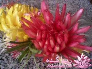 پیازها را برش میزنیم و در محلول آب سرد و رنگ خوراکی دلخواه قرار میدهیم ... از این پیاز برای تزیین غذاهای گوشتی میشه استفاده کرد