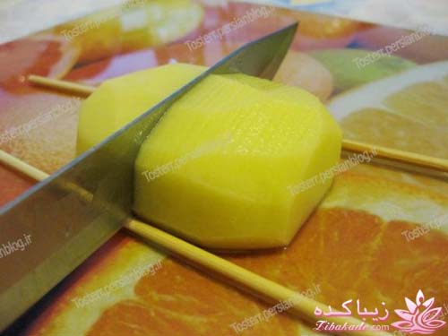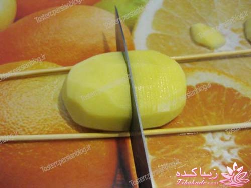 برای برش دادن سیب زمینی به این شکل دستگا ه های مخصوصی وجود داره البته بدون دستگاه هم می تونید این کار رو انجام بدید