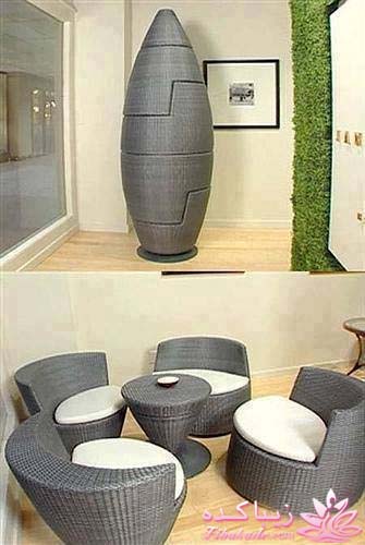 عسلیهای فلزی و لوستر صدفی همراه با حصیرهای بامبو تعادل ایجاد کردهاند.