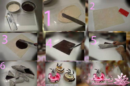 6 چسب را باز کنید به آرامی ورق تلق با از شکلات جدا کنید و بلافاصله برای تزیین استفاده نمایید...