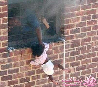 این عکس نادری است در هند که برای اینکه کودکش از دود آتش سوزی خفه نشود او را بیرون خانه نگه داشته و جالب این است که وقتی خودش فوت می کند ، کودک خود را ول نمی کند و آتش نشان ها او را نجات می دهند.