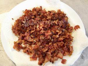 کمی از مخلوط سرخ شده بیکن و پیاز