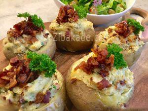 این سیب زمینی های خوشمزه را با سالاد دلخواه بعنوان غذای اصلی  و یا بعنوان ساید دیش در کنار هر نوع استیک میتوان سرو کرد.