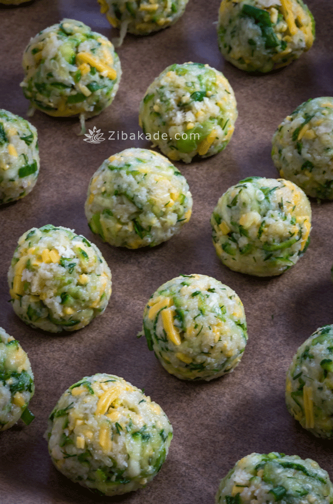 یک قاشق غذاخوری در هر زمان ، مخلوط کدو سبز را درون توپهای کوچک فشار دهید. روی صفحه پخت قرار دهید و تا زمانی که تمام مخلوط کدوها استفاده نشده است ، تکرار کنید.