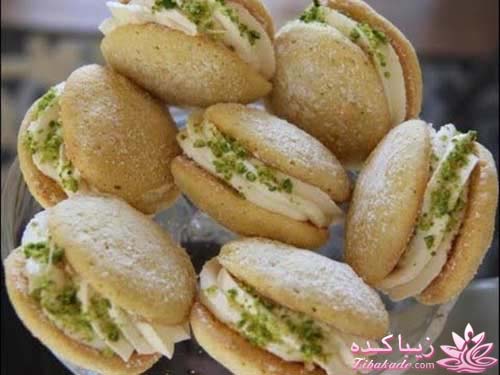 با دست گلوله های کوچک درست کرده ( یا با خامه پاش ) و با خلال پسته تزیین میکنیم