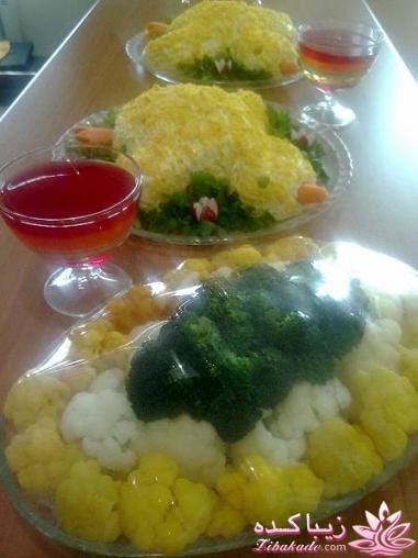 چون الویه یه راست تو ظرف اصلی تزیین میشه ممکنه نتونین توی ظرف واطراف جوجه رو نتونین کاملا تمیز در بیارین و ظرف سسی شده باشه .در اینجا بهترین کار اینه که مثل من دورش رو جعفری بذارین تا ظرف پیدا نباشه