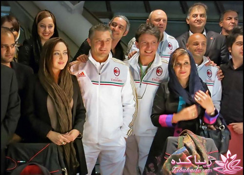 نیکی کریمی و فاطمه معتمدی آریا در کنار بازیکنان آث میلان