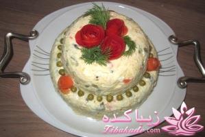 مایونز از روغن زیتون استفاده میشود و برعکس سالاد الویه تمام مواد از