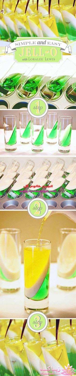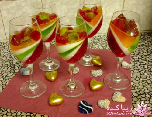 به نظرم بهتره یه لایه ژله و یه لایه ژله بستنی باشه تا تفاوت رنگش محسوس تر باشه