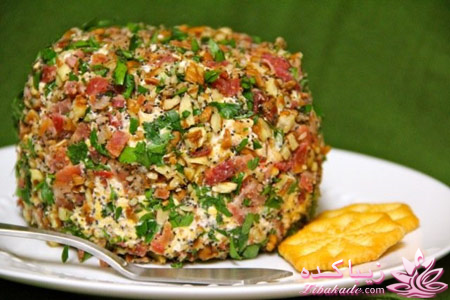 4. باقی گردو، بیکن، جعفری و دانه خشخاش را با هم مخلوط کنید و داخل بشقاب بریزید. روی کوفته های پنیری را بردارید و در مخلوط گردو و بیکن بغلتانید تا کاملاٌ پوشش داده شود. مخلوط رویه را کمی فشار دهید تا کوفته ها به آن بچسبد. مجدداً درب ظرف را با ورقه پلاستیکی بپوشانید و تا موقعی که می خواهید میل کنید در یخچال قرار دهید.