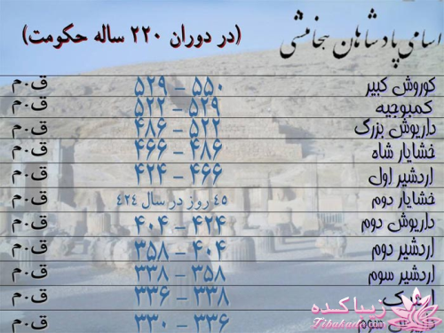 کوروش دوم که به کوروش بزرگ و کوروش کبیر مشهور است، بنیانگذار و نخستین شاه شاهنشاهی هخامنشی بود که در بین سالهای ۵۵۹ تا ۵۲۹ پیش از میلاد، بر نواحی گستردهای از آسیا حکومت میکرد. کوروش در استوانهٔ خود که در بابل کشف شده، خودش را «فرزند کمبوجیه، شاه بزرگ انشان، نوادهٔ کوروش، شاه بزرگ انشان، نوادهٔ چیشپیش، شاه بزرگ انشان، از خانوادهای که همیشه پادشاه بودهاست» معرفی میکند.